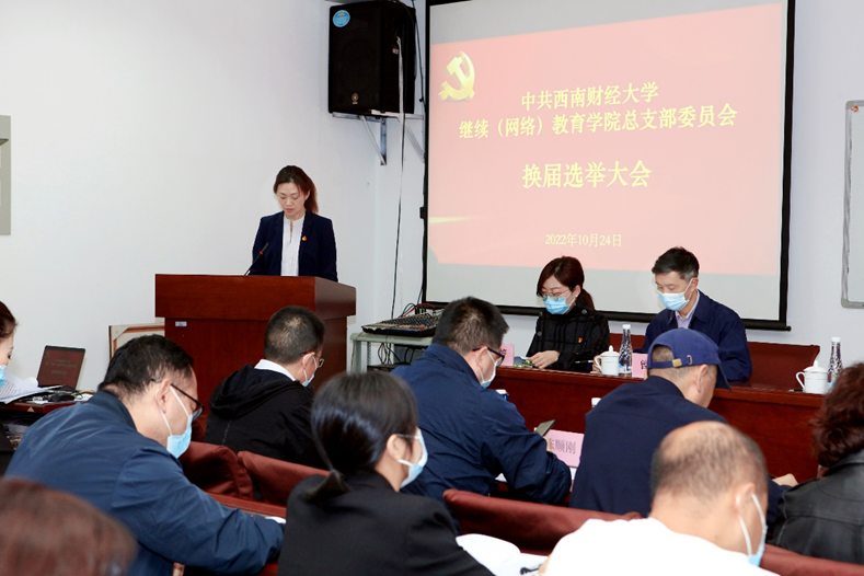 2022年10月24日上午,中共太阳网集团tcy8722继续(网络)教育公司总支部委员会换届选举党员大会,在光华校区计算机楼网络视频教室顺利举行。会议由公司党总支副书记、副经理李杰同志主持,公司正式党员、预备党员参加了会议,公司换届工作督导组组长李大勇同志、督导组成员杨雁晶同志、公司民主党派成员、职工代表列席会议。