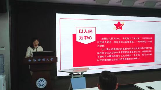 会上全体党员共同学习中央党校习近平新时代中国特色社会主义思想研究中心研究员评论文章《坚定历史自信 增强历史主动》,观看焦点访谈特别节目《续写千年友谊 开辟崭新未来》,了解中国—中亚峰会在古都西安成功举办的重大意义和成果。教师第二支部书记李自利、支部委员张亮亮分别为全体党员讲授题为《以人民为中心:习近平新时代中国特色社会主义思想的根本立场》《做明大德守公德严私德的时代新人》的主题党课。大家一致认为,深入开展学习贯彻习近平新时代中国特色社会主义思想主题教育,是贯彻落实党的二十大精神的重大举措,要在主题教育中感悟思想伟力,坚定信仰信念,在读书学习中知方向、知方法、知方位,用真心、付真情、梦成真,不断推动主题教育往深里走、往实里走、往心里走,用理论学习成果推动工作高效开展。
