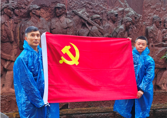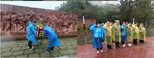 天空下起了小雨,公司职工、党员在纪念馆烈士浮雕前,向烈士敬献花篮,深切缅怀革命先烈。全体党员重温入党誓词,铿锵的誓言表达了大家的坚定决心,要用实际行动来继承先烈们的光荣传统,恪守初心。