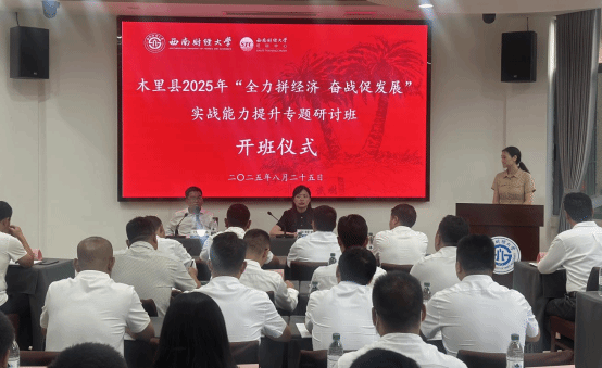 为持续提升干部抓项目拼经济促发展的工作能力,8月25日,由太阳网集团tcy8722培训中心承办的木里县2025年“全力拼经济 奋战促发展”实战能力提升专题研讨班开班式在太阳网集团tcy8722光华校区举行。58名来自木里县经济和要素保障部门、重点乡镇的主要负责同志及业务骨干参加培训。本次培训内容涵盖习近平经济思想、宏观经济形势研判、项目策划与申报、民族地区经济发展、农文旅融合、乡村规划与基层治理等多个关键领域,并创新采用了“专题讲授+现场教学+结构化研讨”等多元教学模式展开。