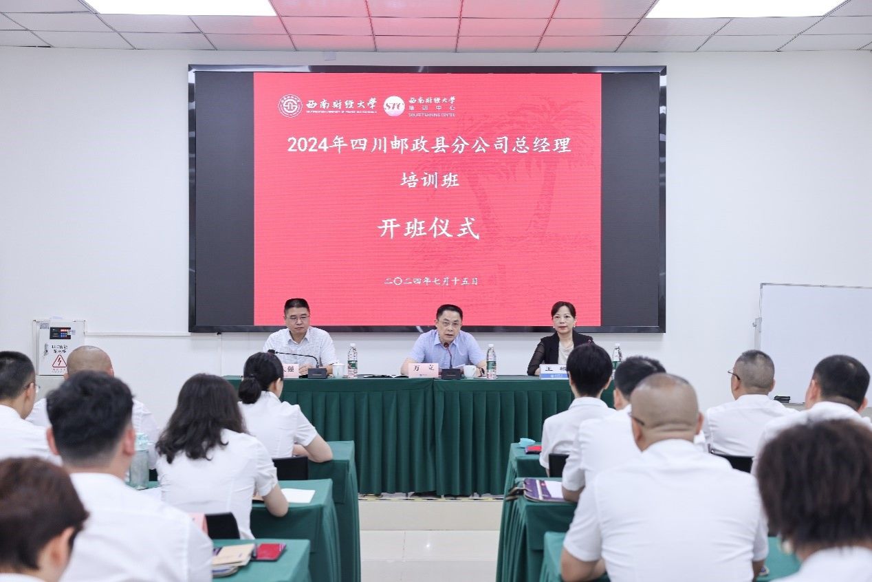 7月15日上午,2024年四川邮政县分公司总经理培训班(第一期)在公司光华校区顺利开班。中国邮政集团有限公司四川省分公司党委委员、副总经理、工会主席万立同志,中国邮政集团有限公司四川省分公司人力资源部(党委组织部)总经理、部长秦大强同志,继续(网络)教育公司培训拓展与运营中心主任王敏同志出席开班式。各县级邮政分公司总经理共50多人参加培训。