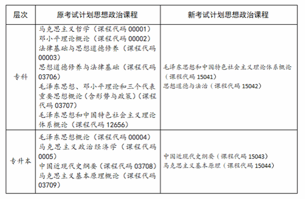 (一)新考试计划各专科、专升本专业均设置“习近平新时代中国特色社会主义思想概论”(课程代码15040),并纳入毕业条件。