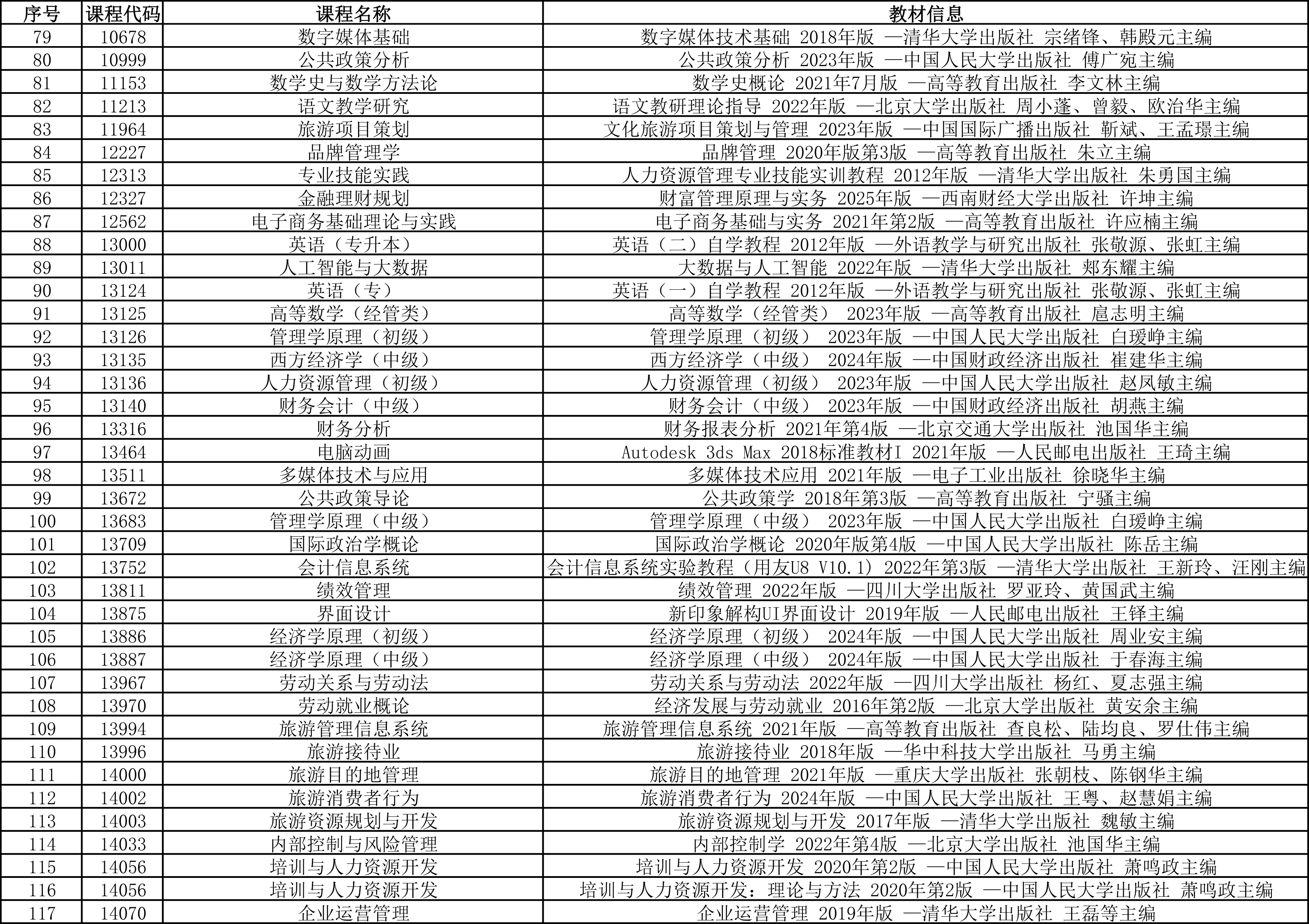太阳网集团tcy8722高等教育自学考试应用型专业课程教材版本详情