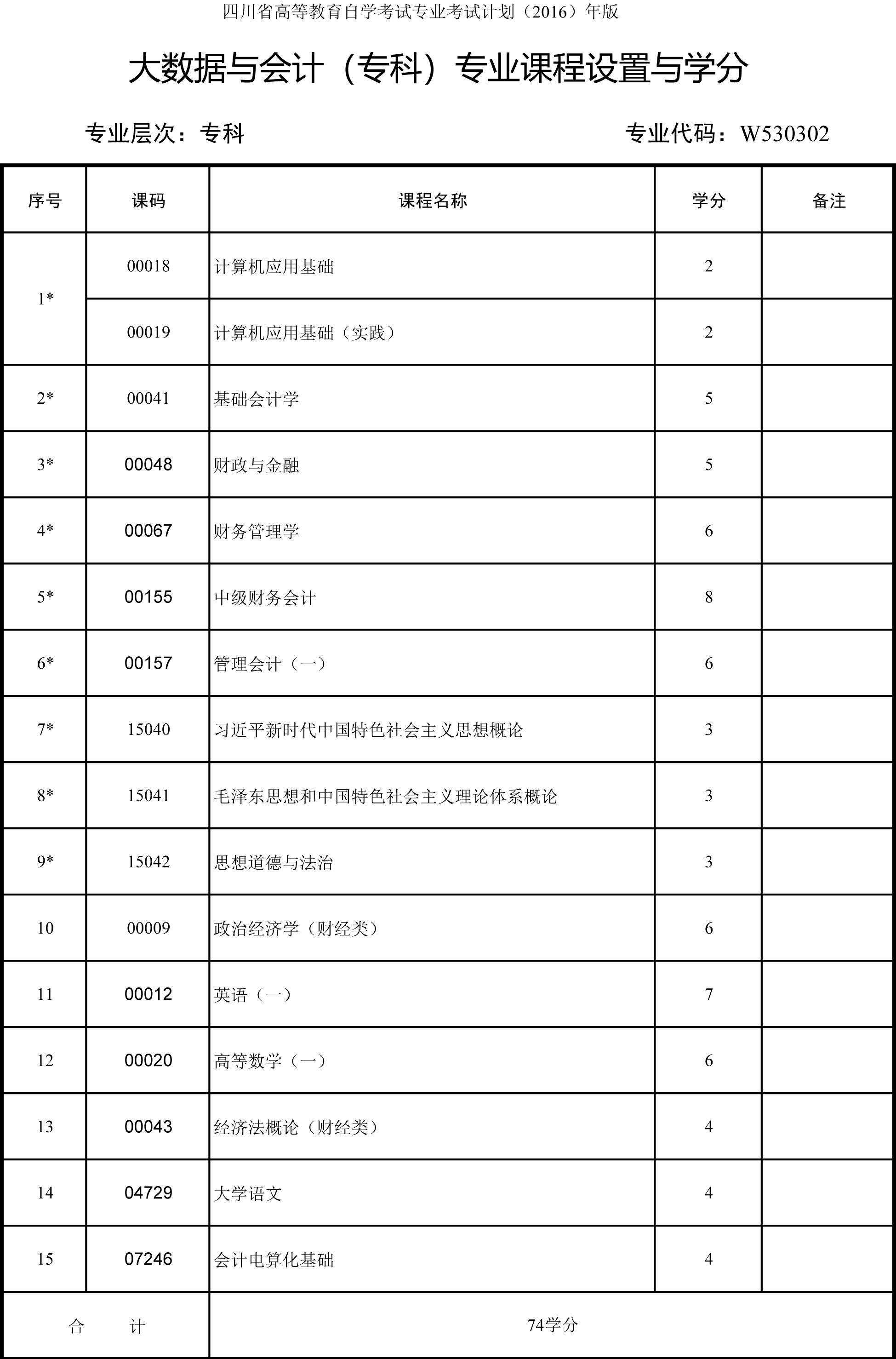 2.专科各专业课程设置注有“*”号的为统考课程。