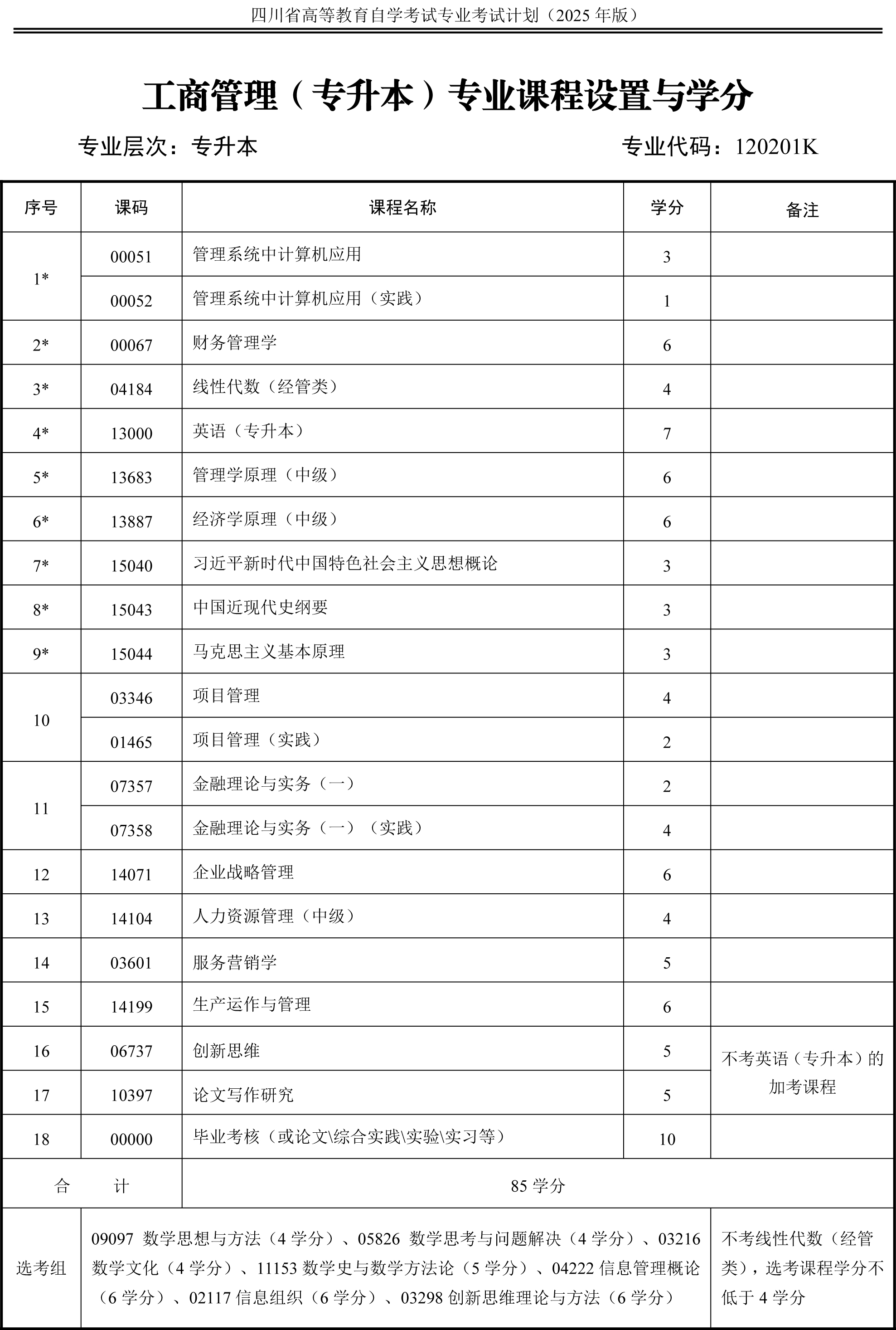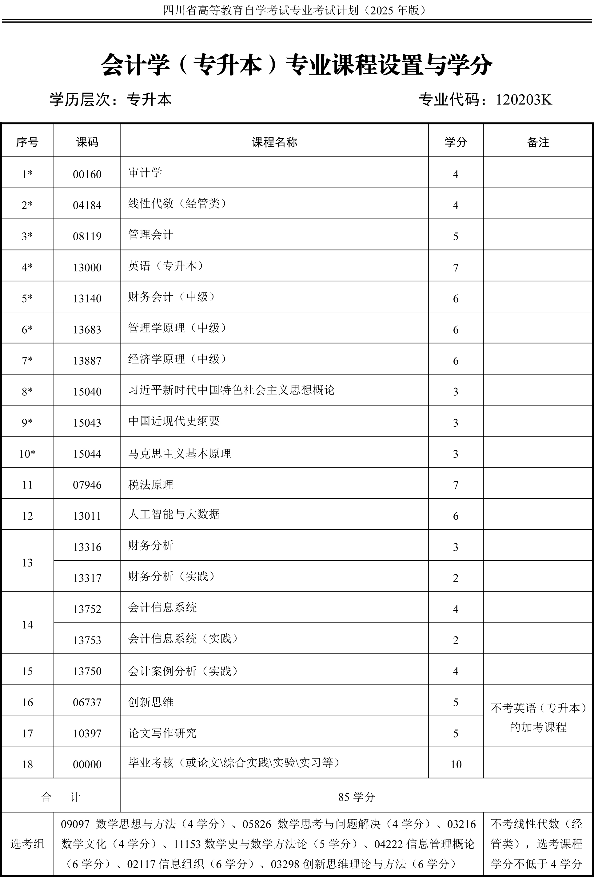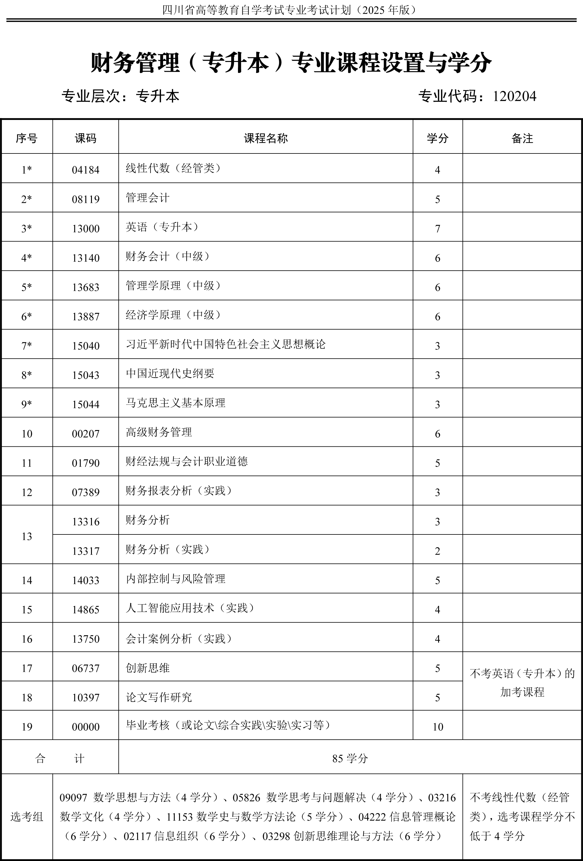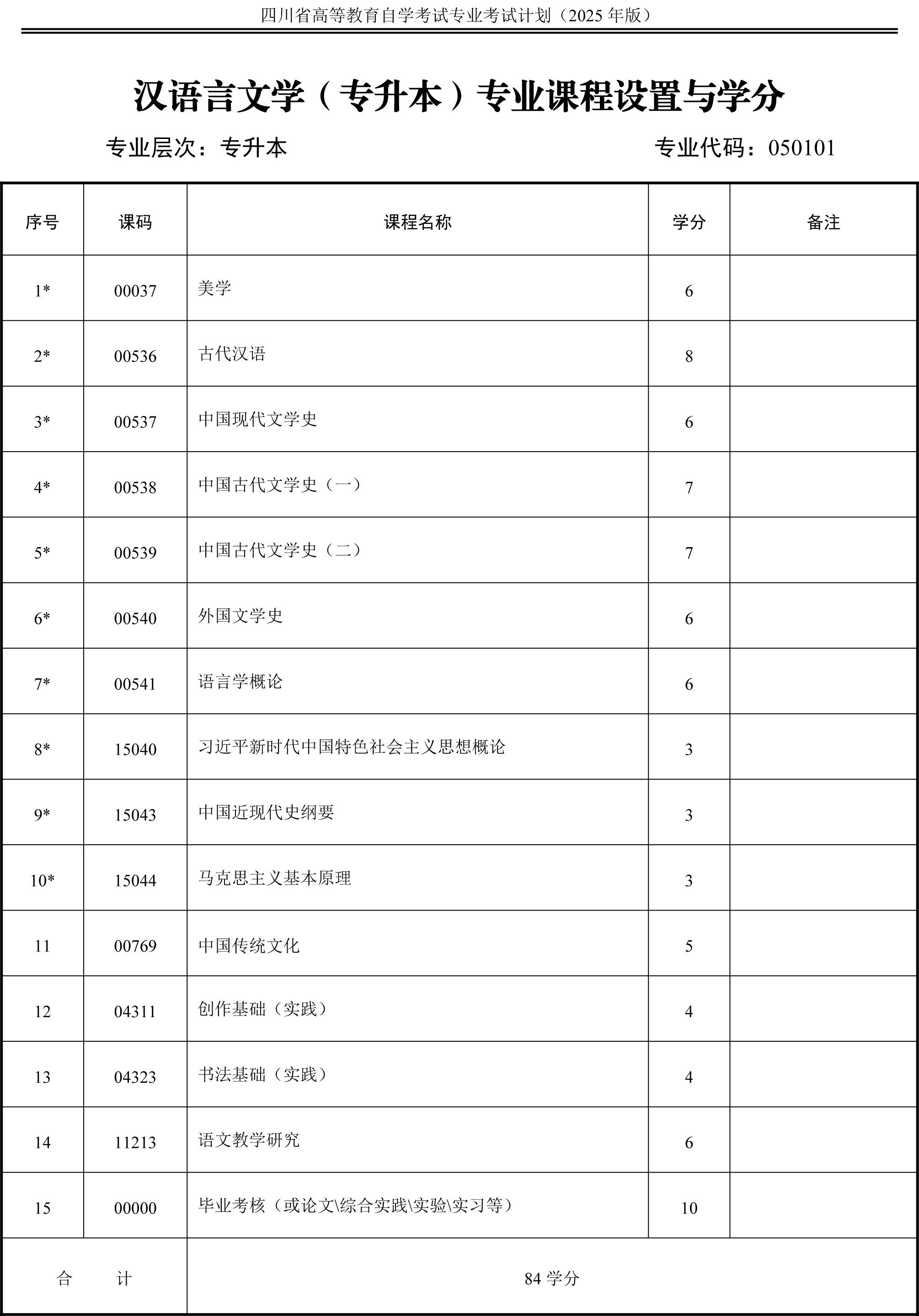 2.专升本各专业课程设置注有“*”号的为统考课程。