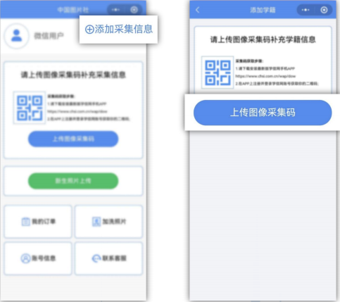 (1)点击右上角,添加采集信息之后点击小程序页面中上传图像采集码。