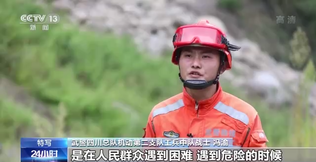 武警四川总队机动第二支队工兵中队战士 冯渝:是在人民群众遇到困难,遇到危险的时候,第一个冲锋陷阵,第一个起到模范作用。