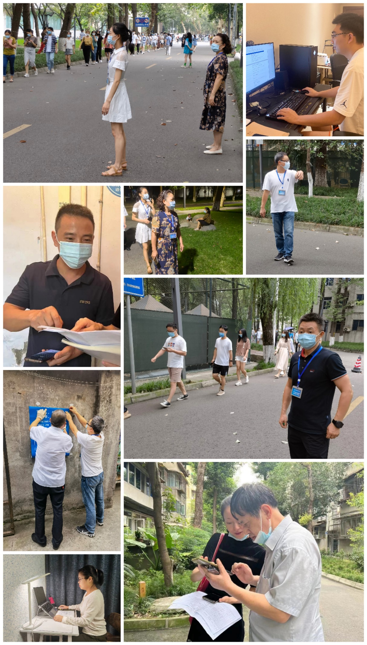 面对光华校区家属区租住户数量大、情况复杂的情况,杨刚响应公司党委号召,主动加入公司党员先锋队,承担起家属区住户信息数据复核的任务,带领公司谭诣、李春兰、张亮亮三位老师摸排住户信息、宣传防疫政策、核对家属区校外租住人员核酸检测情况,确保摸排全面覆盖、数据准确无误,推动家属区居住人员核酸检测“应检必检、不漏一人”。这几天,他又和光华校区巡查劝导组成员们一起,在校园里留下了一声声温馨地提醒、一次次耐心地劝导、一个个忙碌的身影。
