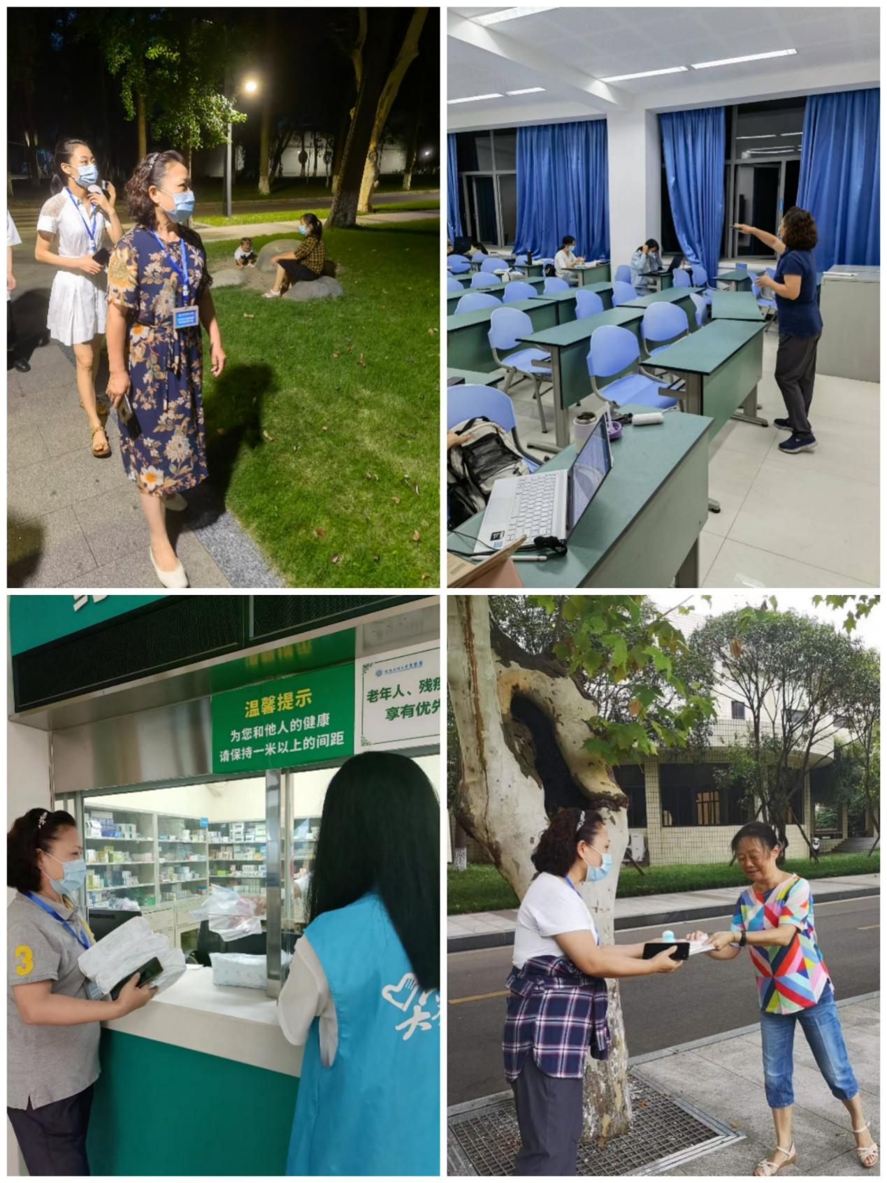 9月8日以来,兰萍又加入了光华校区巡查劝导组。现年59岁的她,经常迎着朝阳出门,踏着星光回家,和员工志愿者们从早到晚在光华校区各处巡查,提醒师生佩戴口罩、不要聚集,没有一丝一毫的犹豫退缩,更没有展现出一点疲惫的姿态。