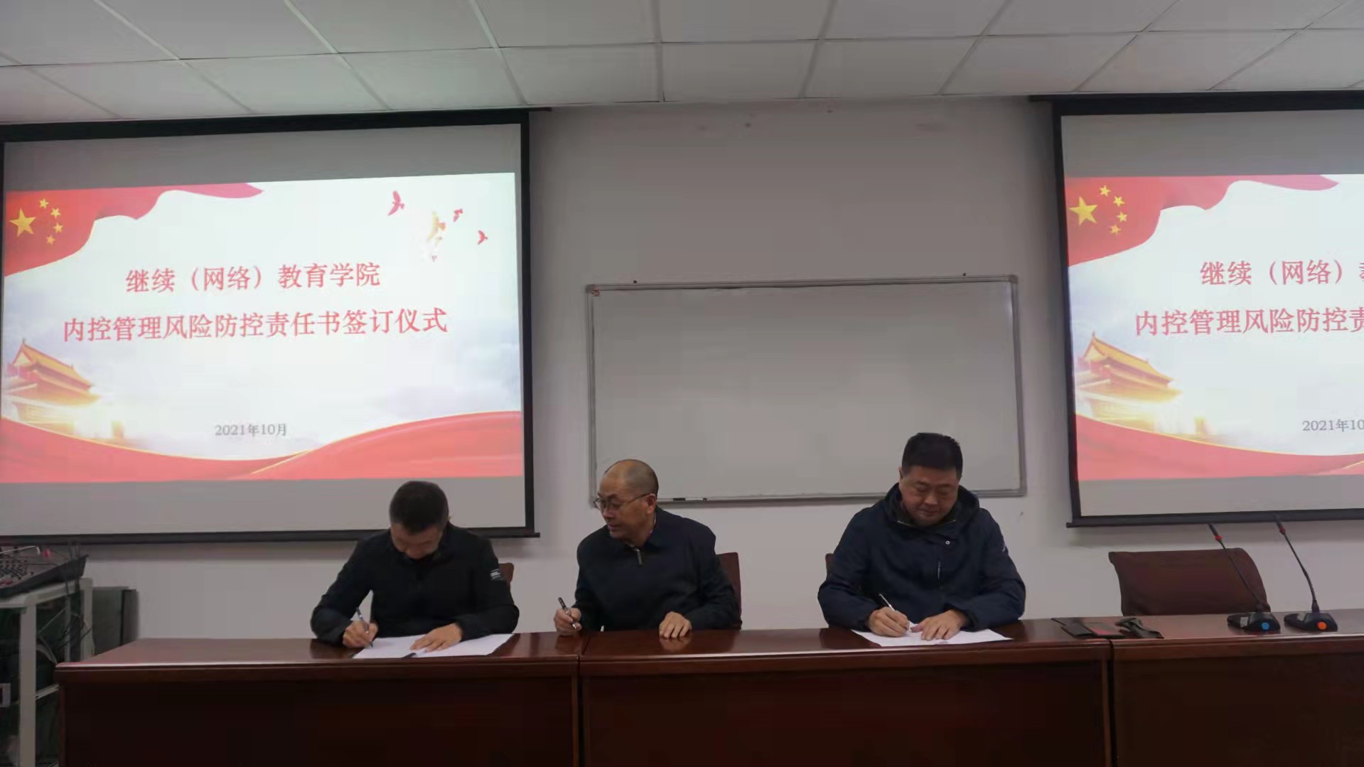 10月9日下午,在光华校区计算机楼一楼106教室,举行了“继续(网络)教育公司内控管理风险防控责任书签订仪式”。公司领导班子、各业务部门负责人及纪检工作小组全体成员参加了本次签约仪式,仪式由公司党总支副书记、纪检工作小组组长郑斌主持。党总支书记殷晓明、经理陈顺刚共同与各部门负责人签订了《继续(网络)教育公司内控管理风险防控责任书》,本次责任书的签订为公司落实巡视整改和进一步贯彻全面从严治党要求,加强党风廉政建设起到了积极作用。(纪检工作小组)