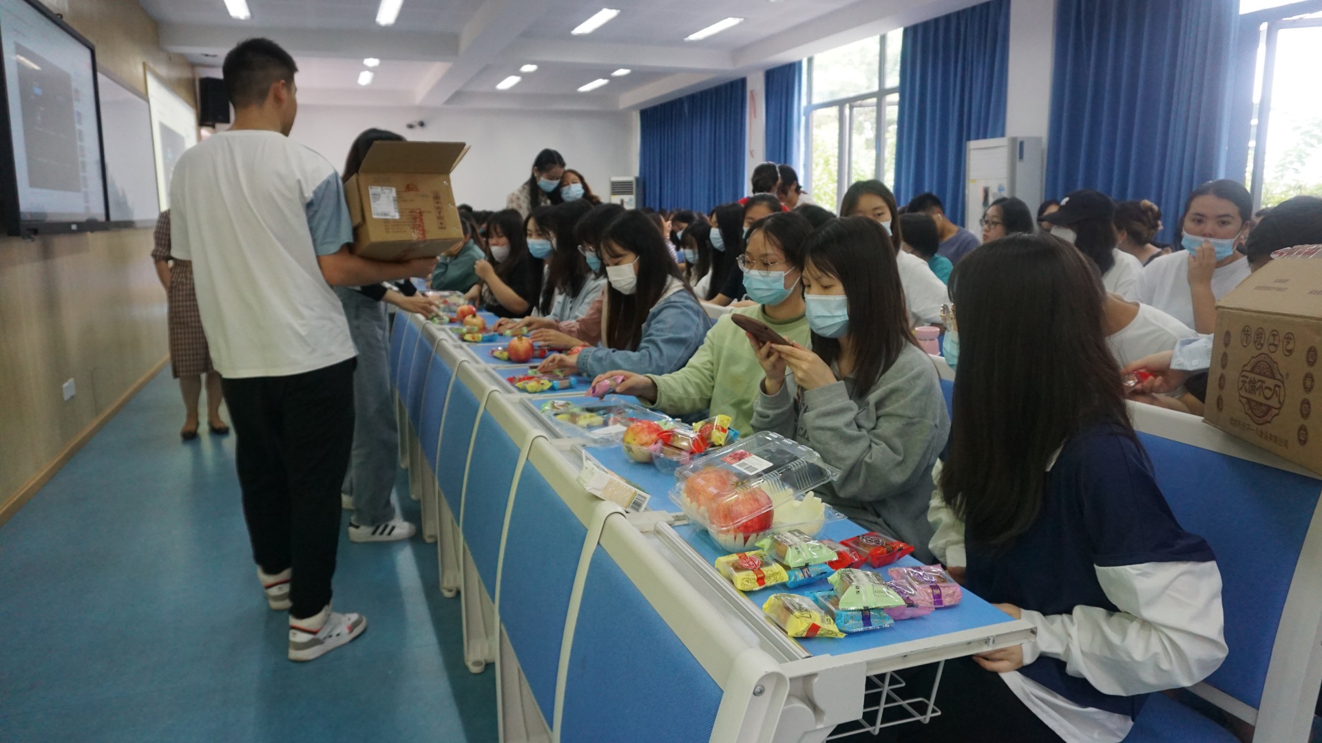 恰逢中秋节即将到来,师生们共同观看了央视节目《经典咏流传•但愿人长久》,歌咏中国探月工程背后一代又一代人对登月梦想的接力传承!观看活动结束后,员工工作部老师和员工干部为同学们分发了月饼、水果。公司党总支副书记郑斌来到活动现场,为同学们送上美好的节日祝愿,希望大家在中秋佳节赏月团聚的同时,做好个人疫情防护!