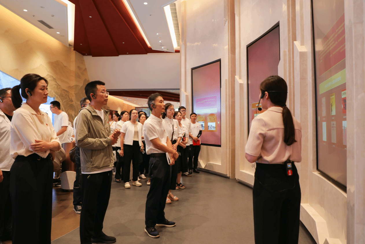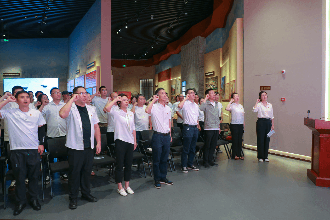会上,面对鲜红的党旗,全体党员在曾朝夕经理的带领下,高举右拳,重温入党誓词。“为共产主义奋斗终身”的铮铮誓言在教育馆内久久回荡,既是对革命先辈的郑重告慰,更是面向新时代征程的坚定承诺。