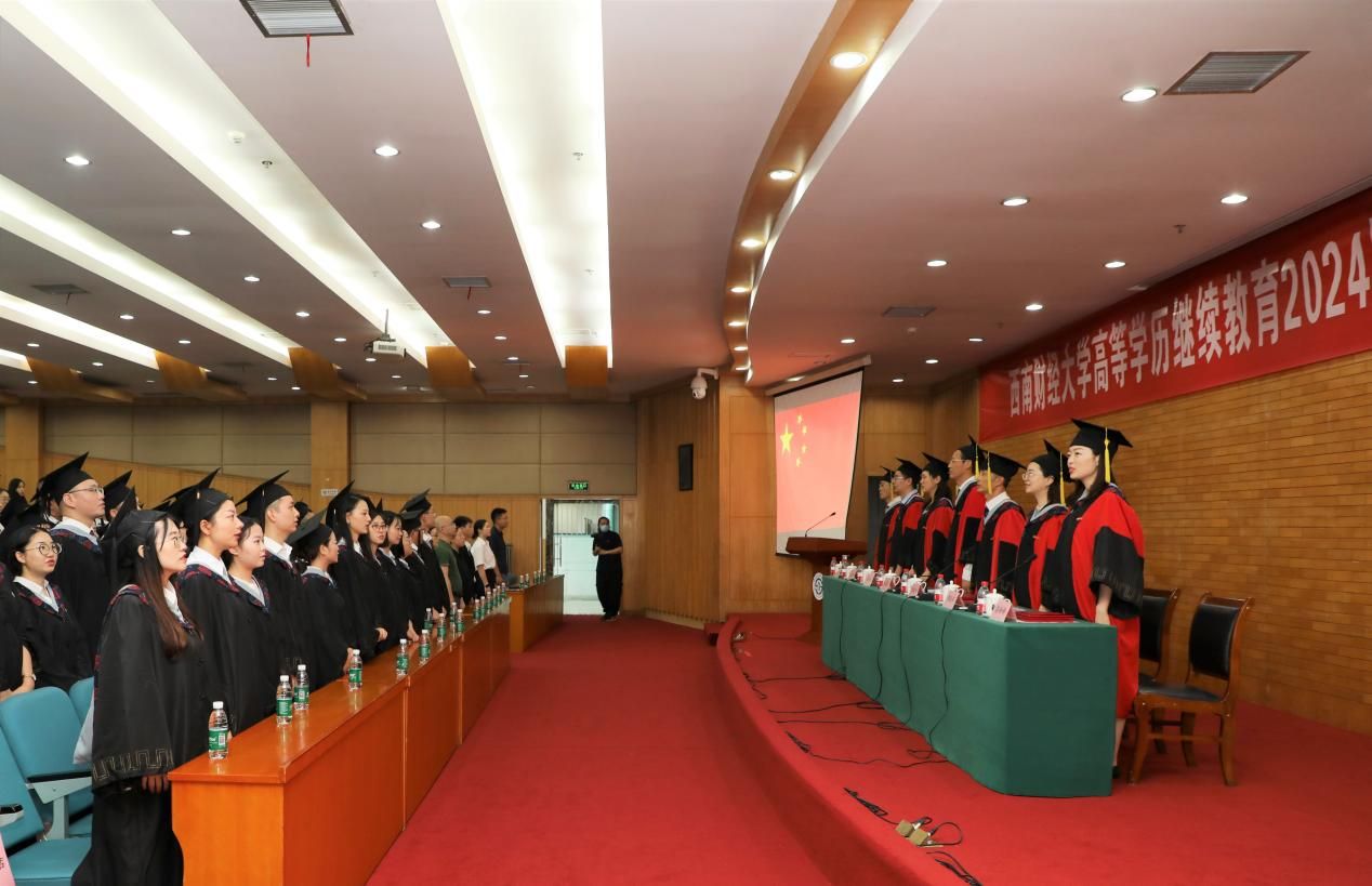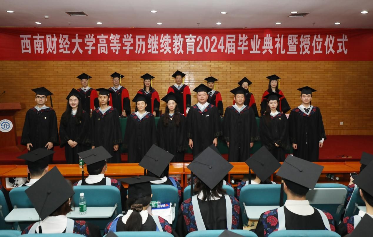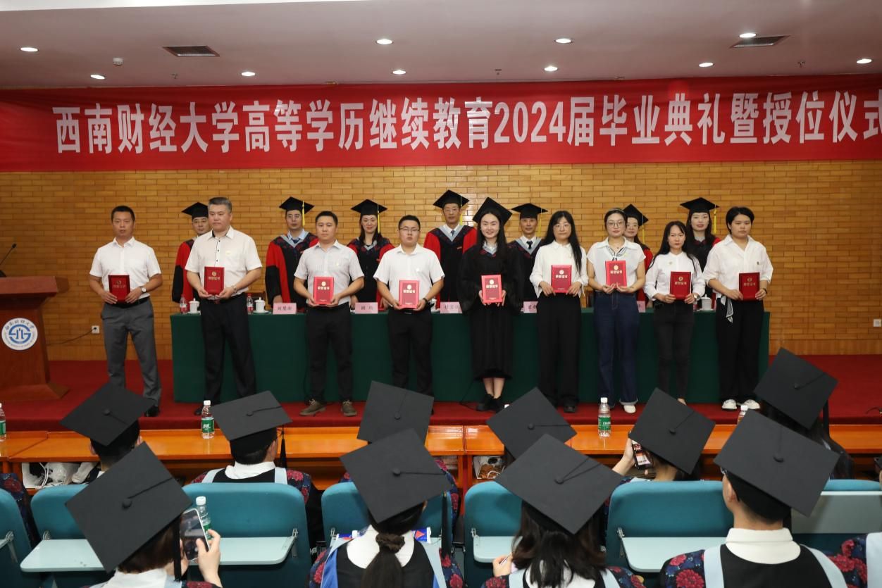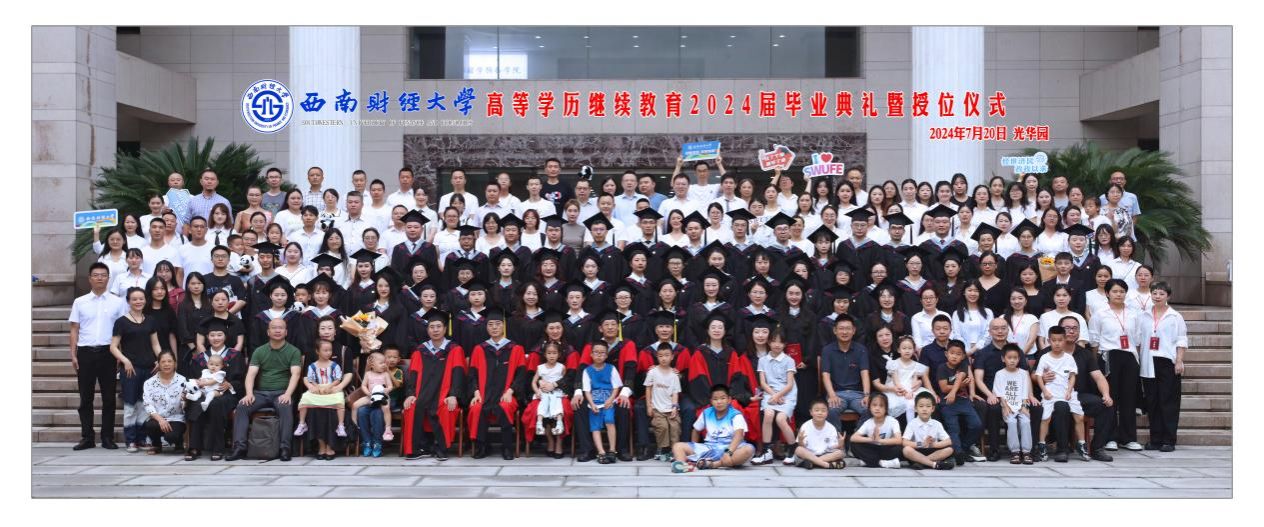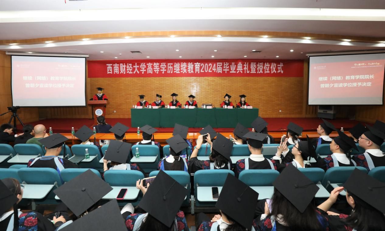 7月20日上午,公司在光华校区光华西厅举行高等学历继续教育2024届毕业典礼暨授位仪式,深情送别毕业生。公司党委常委、副董事长桂富强,教务处副处长廖春华,研究生院学位科科长刘慧新,继续(网络)教育公司经理曾朝夕、党总支书记顾绚、党总支副书记、副经理李杰、副经理高婷婷,公司职能部门负责人、教职工代表、家属代表,成人教育、网络教育、自学考试应用型专业2024届毕业生参加典礼。李杰主持典礼。
